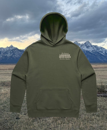 A classic ranch hoodie that started it all. Made in the USA with premium midweight cotton, built for the ones who live by grit, land, and legacy, a piece of Lonesome Seven Ranch heritage you can wear anywhere.