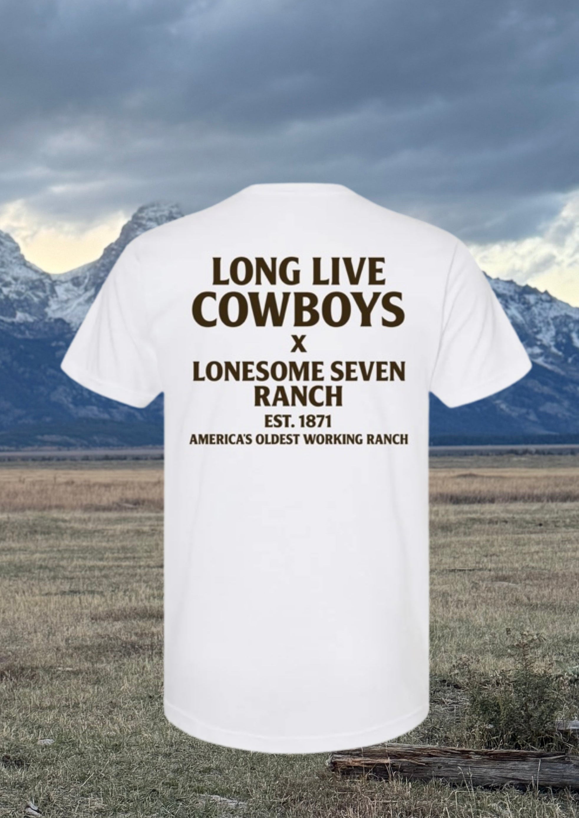The screen-printed design features the bold “LONG LIVE COWBOYS” declaration on the back, paired with the L7R insignia on the front chest.