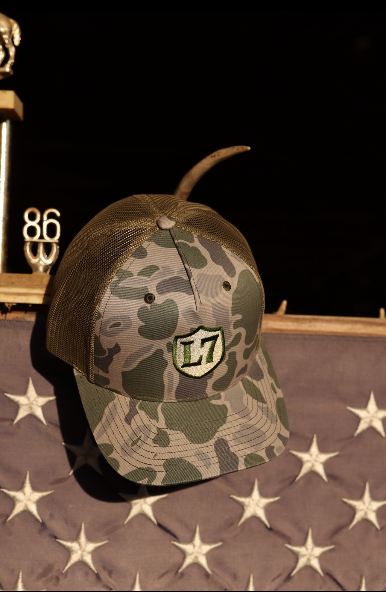 The Brush Ranger Snapback is Lonesome Seven Ranch’s salute to America’s outdoorsmen the hunters, ranchers, and riders who carve their own path. Featuring a camo twill front, breathable mesh back, and the embroidered L7 Shield, this cap blends function with legacy. It’s made to weather dust, sun, and sweat the same way its wearers do. Whether you’re glassing the ridgeline at dawn or hauling feed at dusk, the Brush Ranger keeps you shaded, sharp, and unmistakably L7.