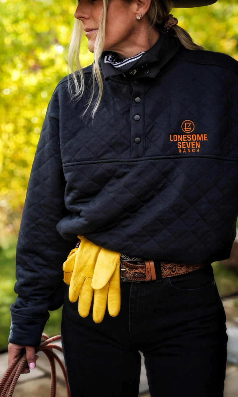 Inspired by the hardworking cowboys and ranch hands of the Gallatin Valley, this pullover bridges performance and heritage. Built for cold mornings in the saddle or long drives west, it represents Lonesome Seven Ranch’s promise gear made for those who live life seven days a week, one way of life